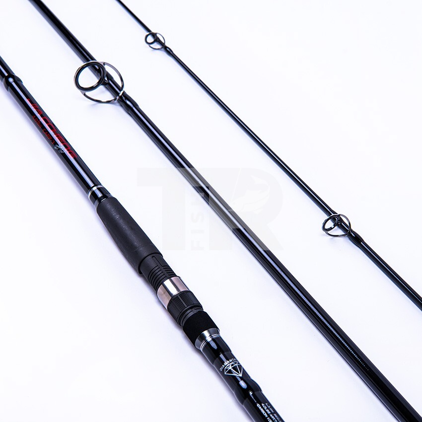 Бланката е изработена от 100 % 24-T карбон, което гарантира ниско тегло и голяма реакция на бланката. Въдицата е снабдена със 6 SIC водача, като стартовият водач е с диаметър 50 мм – това осигурява плавно преминаване на влакното и намалява триенето, особено при дебели линии. Конструкцията от три части улеснява транспорта и съхранението, което е важно при риболов от брега или когато се пътува.