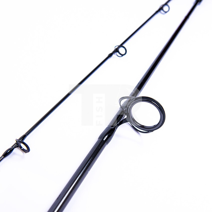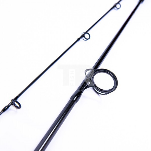 Бланката е изработена от композитен високомодулен карбон, който осигурява здравина без излишно тегло. Черното полирано покритие и стегнатият строй придават на въдицата усещане за стабилност и баланс.