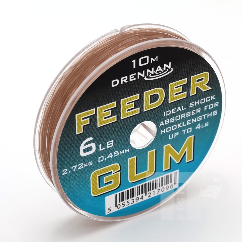 Drennan Feeder Gum 10m е висококачествен ластик за фидер, създаден специално за използване между основното влакно и повода. Неговата роля е да поема внезапните удари при засичане или борба с рибата, като по този начин предпазва фините поводи от скъсване и осигурява по-плавно натоварване по цялата линия.