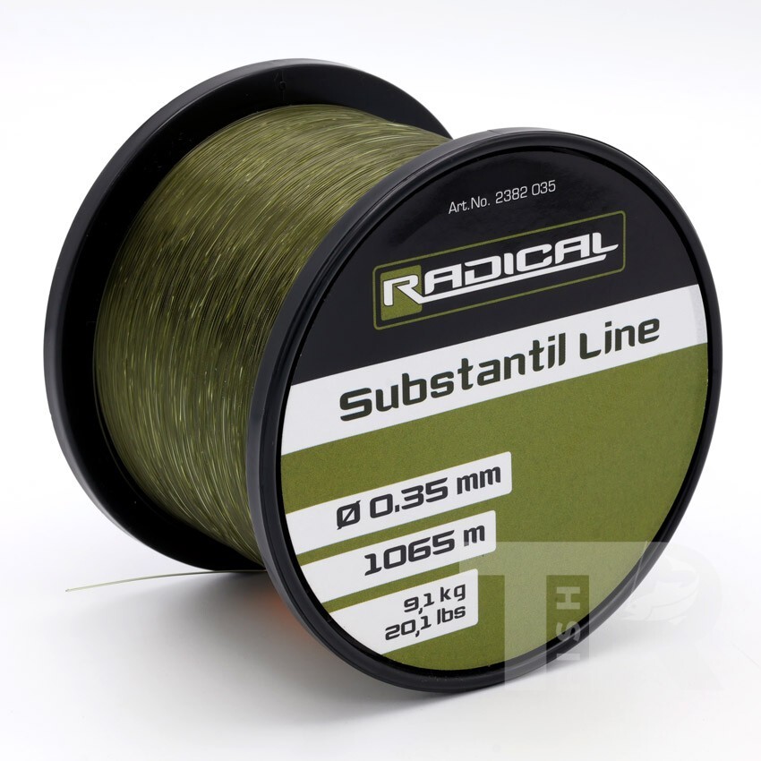 Radical Substantil Line 1065m е висококачествено монофилно влакно, създадено специално за шаранджийски риболов в тежки условия и на дълги дистанции. Изработено по модерна японска технология на екструзия, то се отличава с изключителна линейна здравина, устойчивост на абразия и контролирана разтегливост, която абсорбира резките удари при замятане и борба с едри риби.