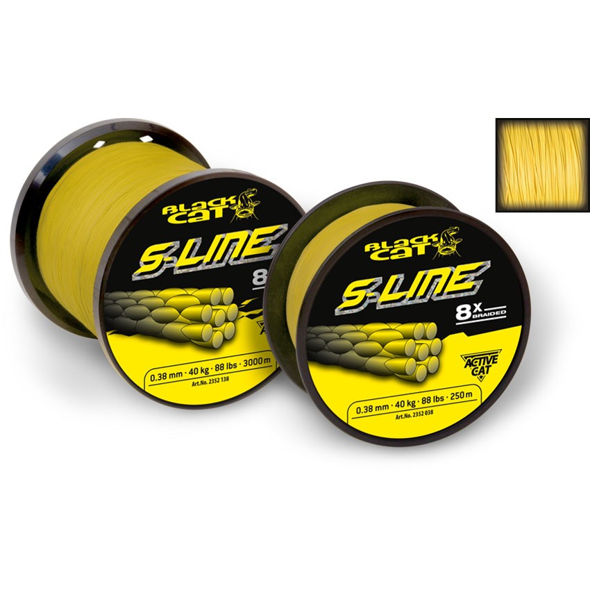 Благодарение на минималното водопоглъщане, BLACK CAT S-Line запазва характеристиките си дори при продължителен риболов, като осигурява надеждно и безкомпромисно представяне при далечни замятания със спининг, както и при безоловно и далечно обтягане на линията при риболов с буй. Яркият жълт цвят осигурява отлична видимост при нощен риболов и при лоши условия на видимост.
