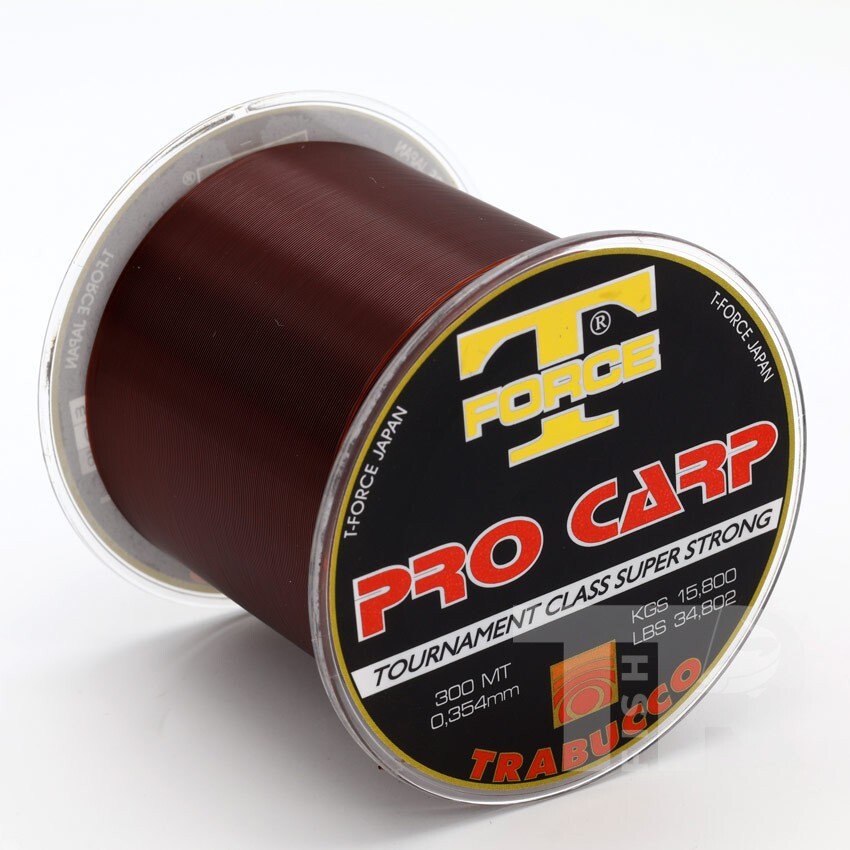 T-Force Pro Carp 300m е монофил специално за шаранджийски риболов, съчетаващ много добра абразионна устойчивост, висока здравина на възела и почти никаква памет, минимизира триенето с водачите при замятане и дава по-плавни, по-точни хвърляния.